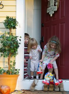 It was simply priceless! Here they were rushing through the door. Zizi of course took the candy and the boot containing her new PJ’s. The little 2 …well, different story! They could’ve cared less about the PJ’s. They acted like a bull seeing a red flag….the red flag being the Kinder candy bag! Hahaha Nothing else matter anymore. Needless to say, they snatched the bag, left everything else ran back inside and slammed the door shut right in front of my eyes. Awesome! I guess Craig must have noticed that some things were missing because not even 10sec later the door swung open again and my 2 little ones came back to retrieve the missing gifts. Jeez….likes I said before….absolutely priceless! Once I was back inside and C.J. realized what character was on his PJ’s (Spider Man, which is his 2nd favorite right after Curious George) he was thrilled and shouted: „OH MY GOSH!“ Guess he was happy about it after all!