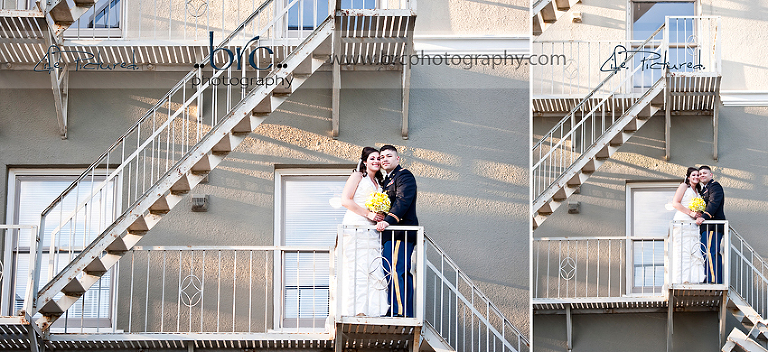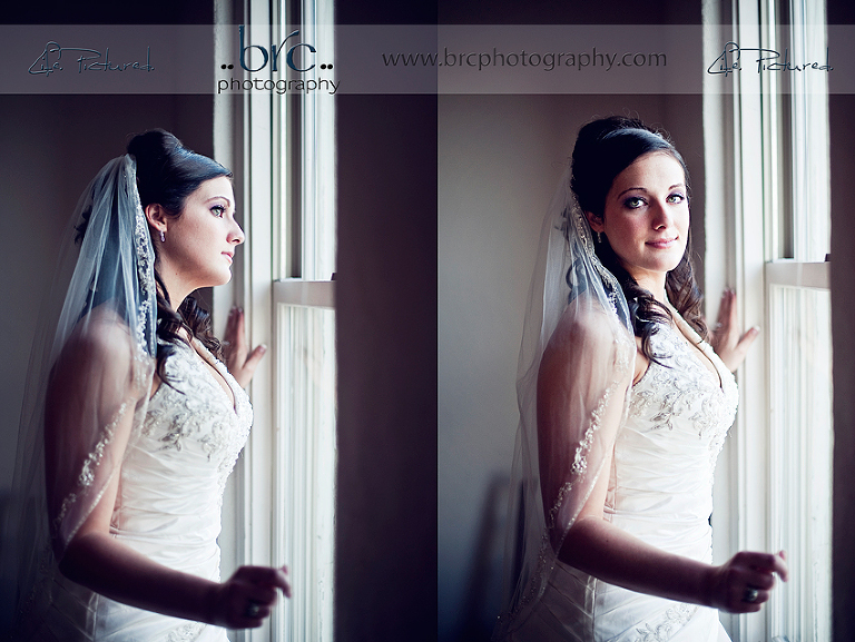 I love her bridal portraits, the first one of her veil blowing, and the b&w staircase shot. Beautiful wedding & images!